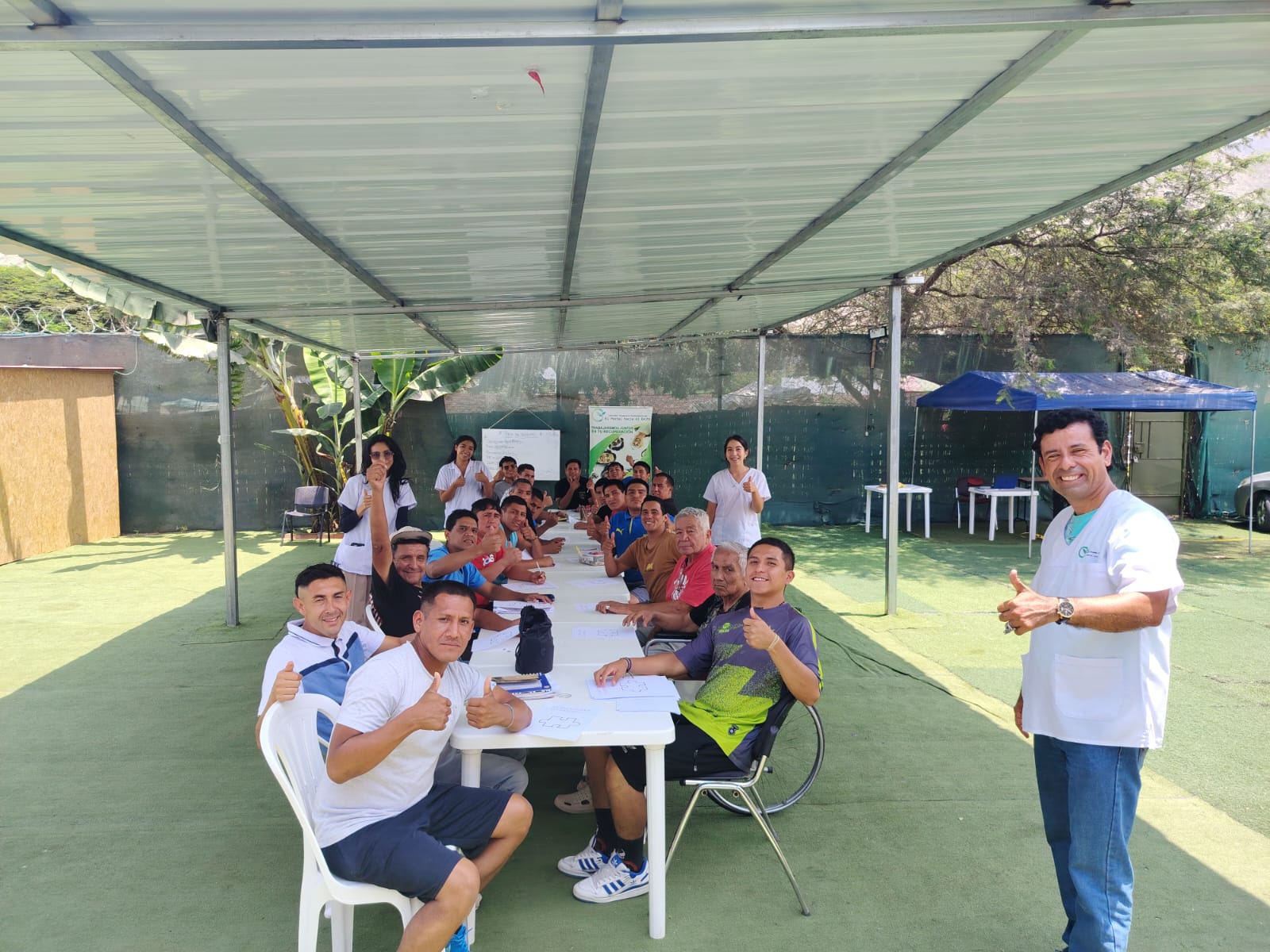 Paralelamente, al tratamiento del paciente, en cualquiera de sus modalidades de abordaje, se realizan grupos psicoterapéuticos para todos aquellos que lo acompañen en su tránsito por el programa de rehabilitación. Estos grupos son coordinados por un Equipo de Psicologos.